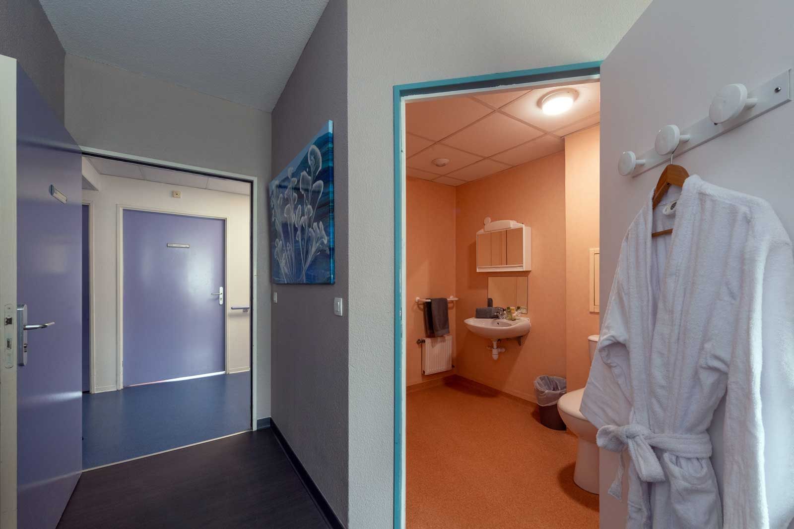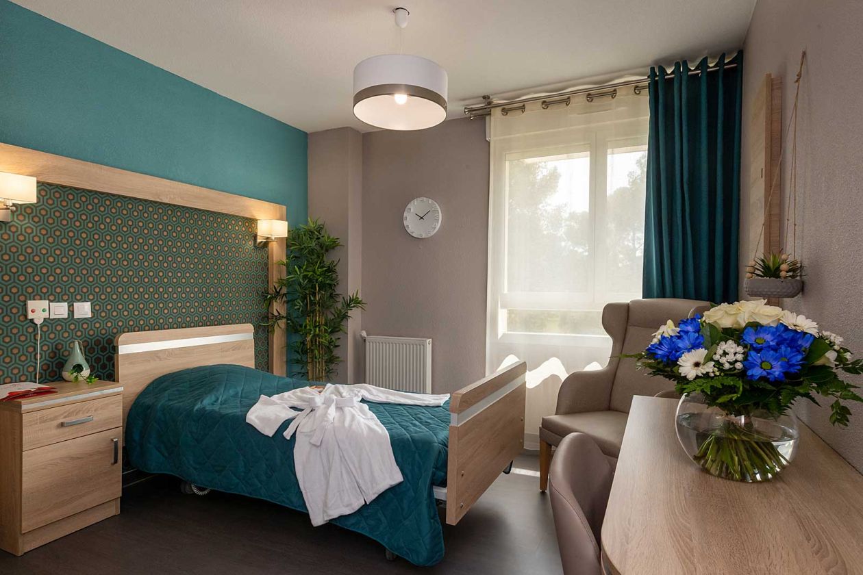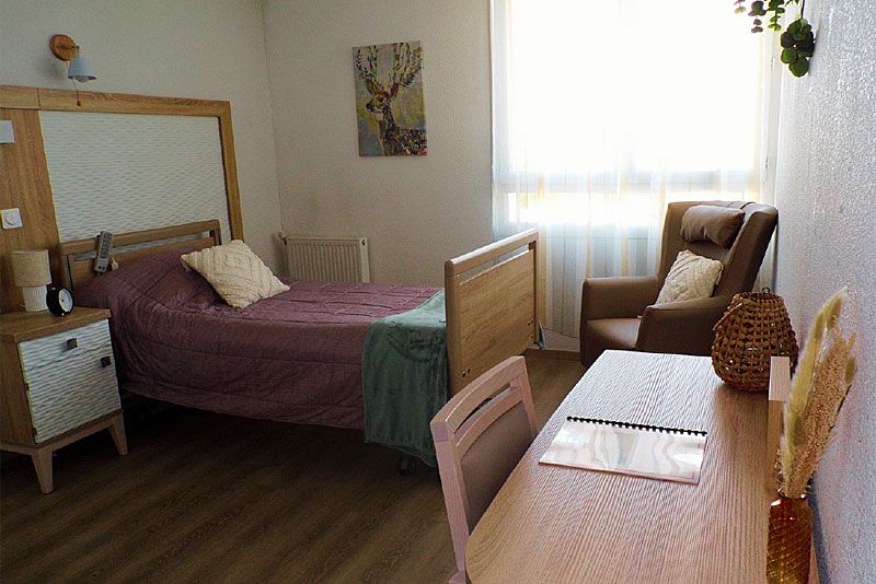 Chaque chambre est équipée d’un lit médicalisé, d’un système d’appel relié 24h/24h à l’équipe médicale, d’une table de chevet, d’un placard penderie, d’un bureau et d’un fauteuil. La salle d’eau et les toilettes sont adaptés à tous les handicaps et respectent les normes de sécurité en vigueur.