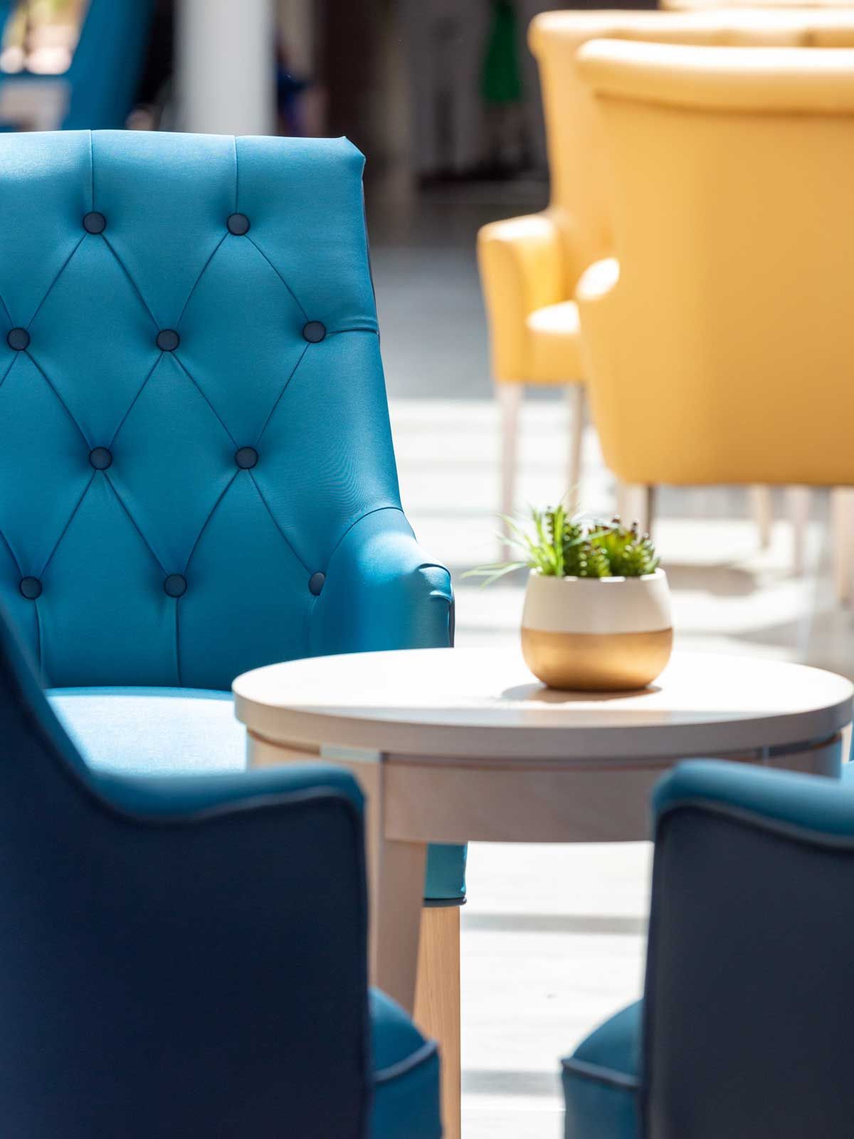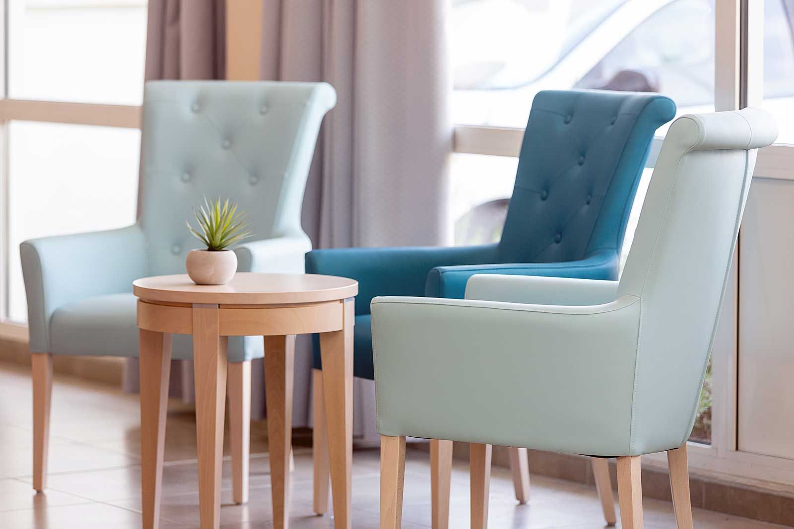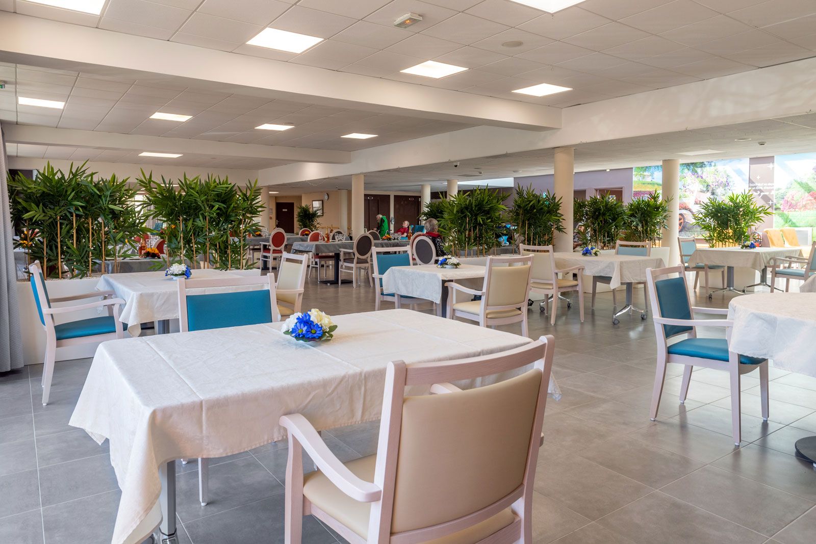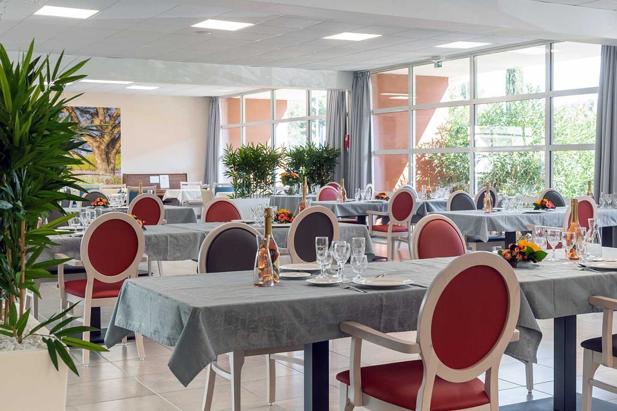 L’établissement dispose au RDC d’une grande salle de restauration et d’un vaste espace d’animation donnant sur les extérieurs. La Résidence est composée de deux étages comptant chacun une trentaine de chambres. Chaque étage dispose d’un petit salon de repos équipé d’une bibliothèque et d’un espace télévision confortable et convivial. L’unité protégée située au RDC dispose également d’une salle de restaurant et de grands espaces de déambulation donnant sur le patio.